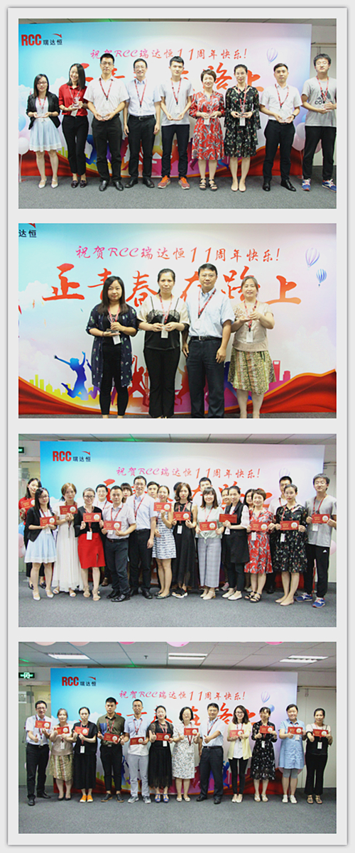 一段由RCC制作的十一周年慶視頻拉開(kāi)了慶典活動(dòng)的序幕。視頻中,敘寫(xiě)了這一年來(lái)公司取得的驕人成績(jī)與開(kāi)展的活動(dòng)、PK戰(zhàn)中RCC員工們熱血的場(chǎng)面、客戶對(duì)RCC信息的評(píng)價(jià)片段、CEO在視頻中的致辭等內(nèi)容,震撼著每一名RCC人。RCC在2017——2018年所取得的諸多創(chuàng)新和進(jìn)步、輝煌的成就和永不止步的發(fā)展態(tài)度,讓在場(chǎng)的每一名員工都倍感光榮和自豪。一個(gè)個(gè)輕松活潑的環(huán)節(jié)讓整個(gè)活動(dòng)現(xiàn)場(chǎng)其樂(lè)融融,充分展現(xiàn)了RCC大家庭的團(tuán)結(jié)與溫暖,把氣氛推向了高潮。公司領(lǐng)導(dǎo)還為眾多在RCC工作三年或以上的員工頒發(fā)了“忠誠(chéng)員工特殊獎(jiǎng)”,本次的頒獎(jiǎng)把原先贈(zèng)予金器的形式改為發(fā)放面額1000元到4000元的“成長(zhǎng)券”形式,專門(mén)用于購(gòu)買(mǎi)圖書(shū)、線上課程、健身卡,幫助老員工提升職場(chǎng)專業(yè)技能和能力、鼓勵(lì)他們積極鍛煉,保持健康的體魄。新的獎(jiǎng)品形式不僅代表著公司感謝忠誠(chéng)員工與公司共成長(zhǎng)的情誼,還表明公司對(duì)員工全面發(fā)展的高度重視,公司也將一如既往地為更多有能力、有思想的員工提供更為廣闊的發(fā)展空間。最后,在團(tuán)結(jié)與溫暖氣氛中,在全體RCC員工對(duì)公司的祝福里,公司十一周年慶典活動(dòng)落下帷幕。